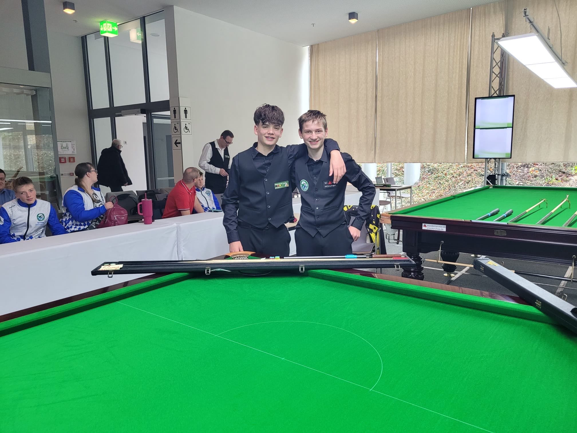 Am 7.11.2025 reisten Ronnie Chalamcharla und Moritz Schiehle zur Deutschen Meisterschaft U15 Snooker nach Bad Wildungen. Ronnie mit Eltern und Fotograf Thorsten Kogge und Moritz mit Mama und Maskottchen Carsten Rogge.