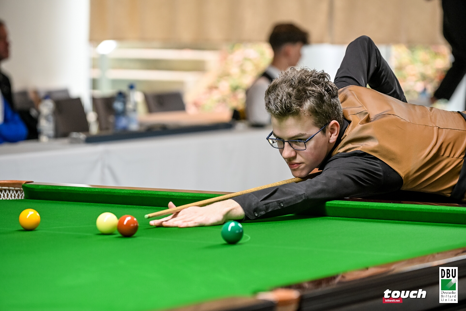 Moritz kam schnell und gut durch die Vorrunde, während Ronnie gegen einen sehr gut spielenden Niklas Teiwes zu kämpfen hatte und mit einer 2:1 Niederlage nun einen Sieg brauchte um in das Viertelfinale einzuziehen. Dies gelang ihm mit einem 2:0 und einem wunderbaren 35er Break.